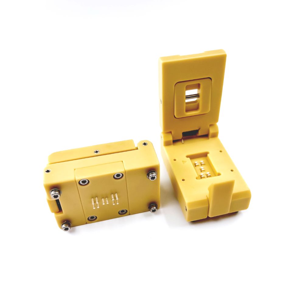 - с одной стороны — контактное устройство фиксируется штифтами и его необходимо припаивать к тестовой плате.