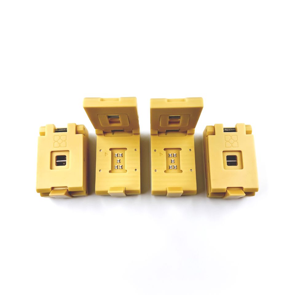 Чаще всего данные контактные устройства изготовлены полностью из полиэфиримида (PEI)/ полиэфирсульфона (PES) / полиэфирэфиркетона (PEEK), допускаются некоторые детали из сплава алюминия (2024 т3511). Механизм прижатия электронного компонента (прижим) — усложнённый: в крышке контактного устройства присутствует специальная площадка, которая обеспечивает равномерное прижатие электронного компонента к контактам. Контакты: